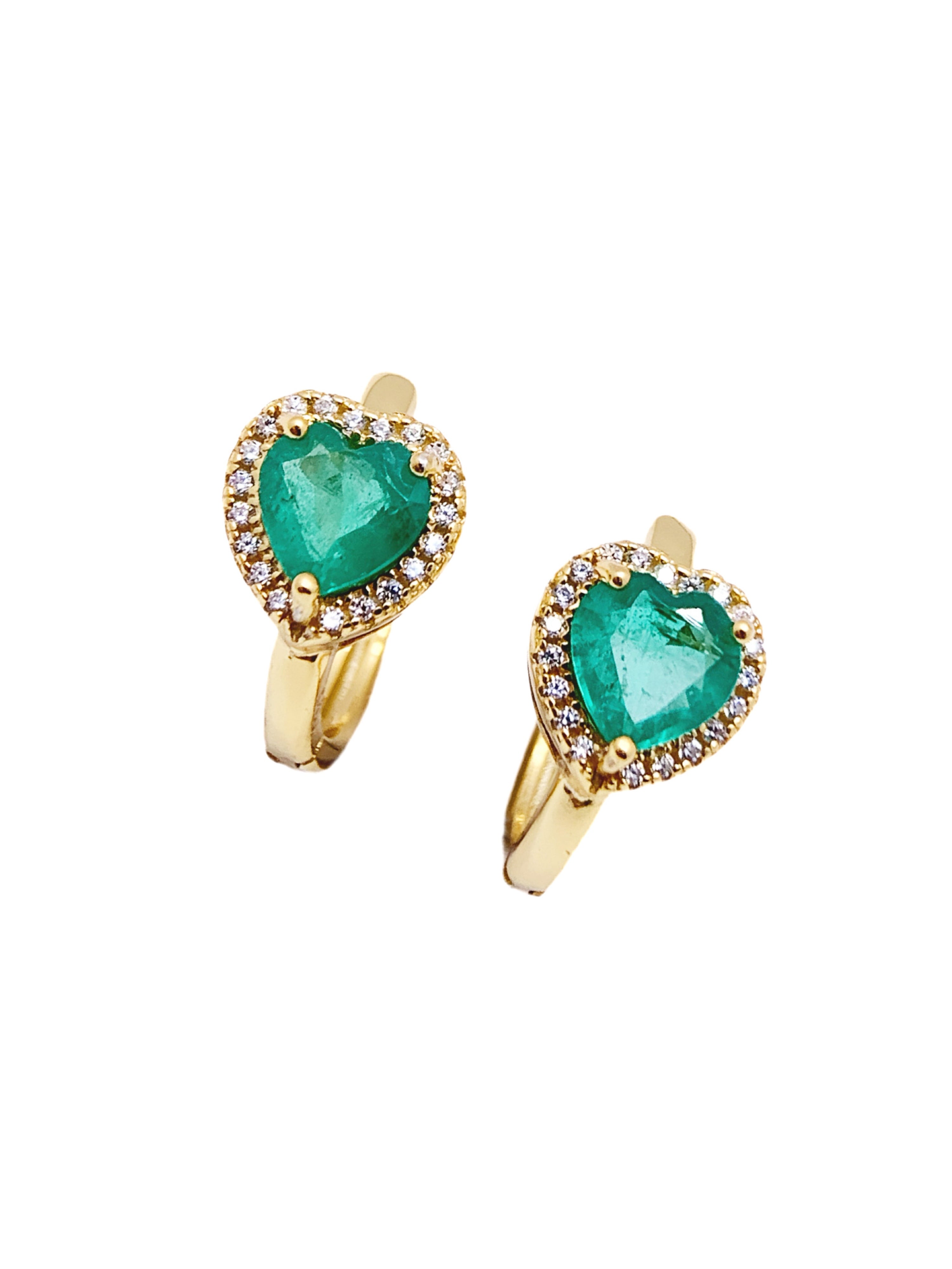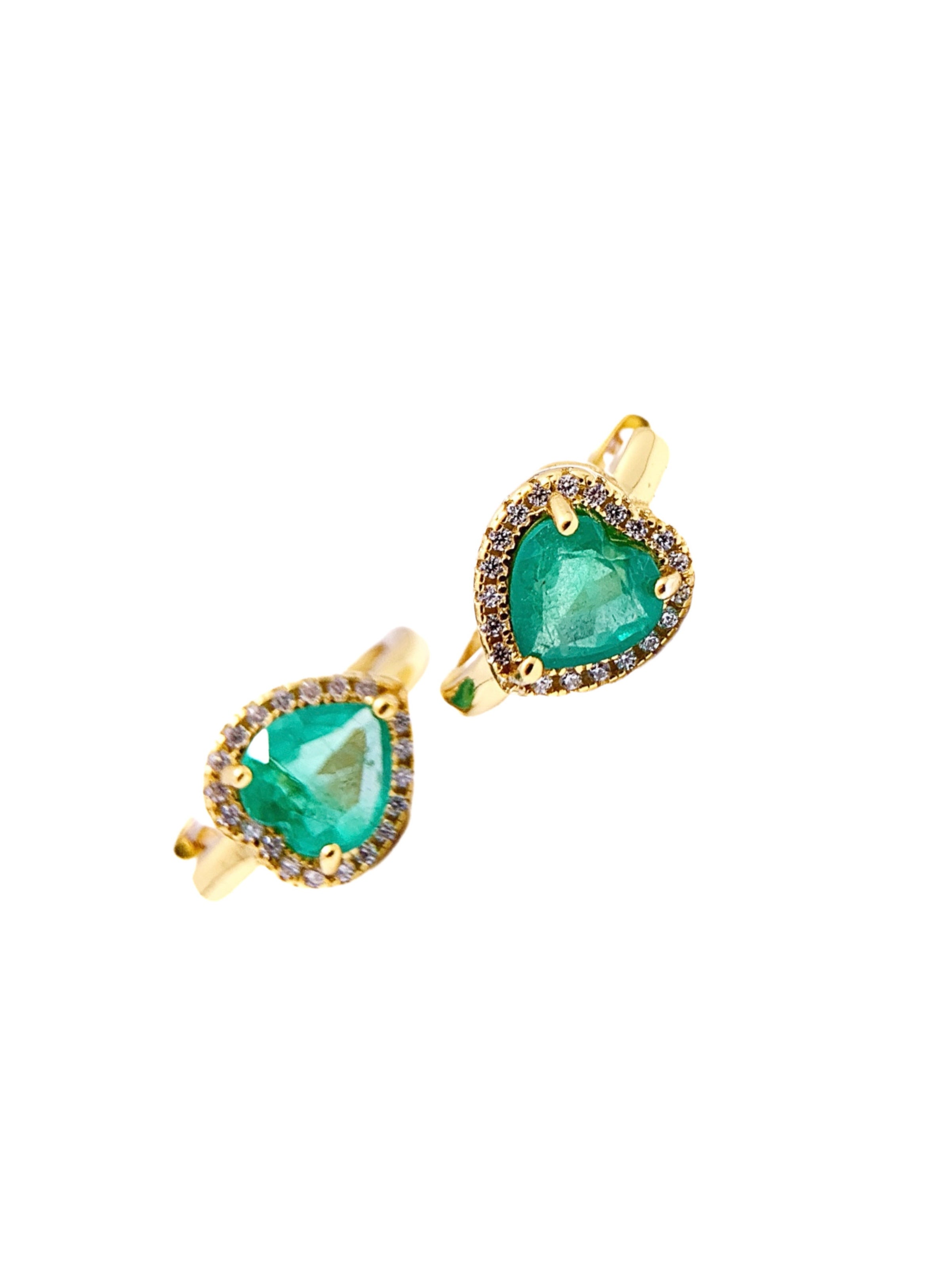 These elegant earrings feature stunning heart-shaped emeralds as their centerpiece, radiating a rich green hue that symbolizes love and vitality. Each emerald is surrounded by a halo of sparkling diamonds, enhancing their brilliance and adding a touch of sophistication. Crafted from S925 sterling silver and plated in gold, these earrings combine luxury with a romantic charm. Perfect for special occasions or as a meaningful gift, these heart-shaped emerald earrings are designed to make a lasting impression.