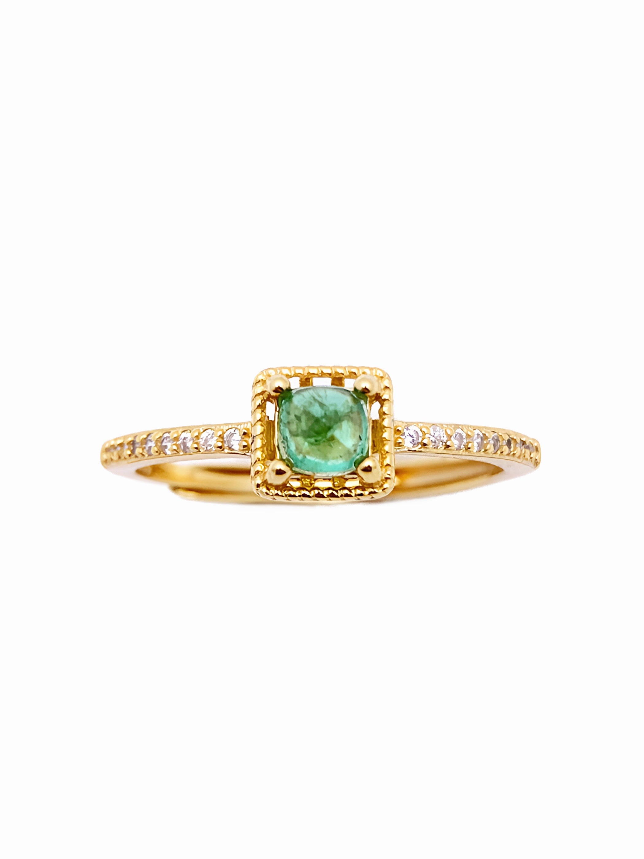 The gorgeous green gem captivates the senses with its rich hue. This classic emerald ring is designed to fascinate.